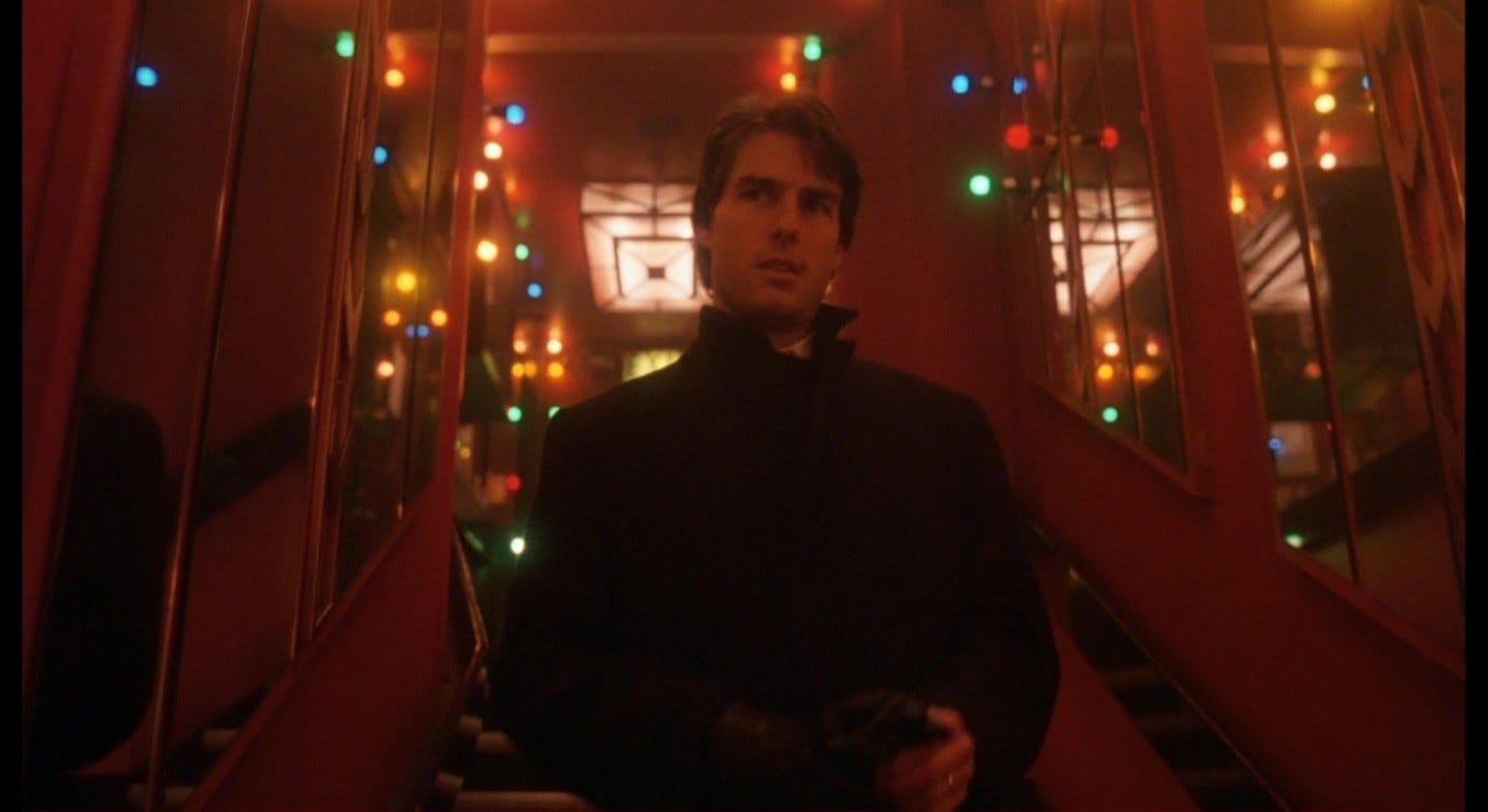 The roaming Steadicam and ubiquitous Christmas lights (multiplied by reflective surfaces) turn ordinary spaces into wonderlands where our peripheral vision is pervaded by strange, blurry colours.