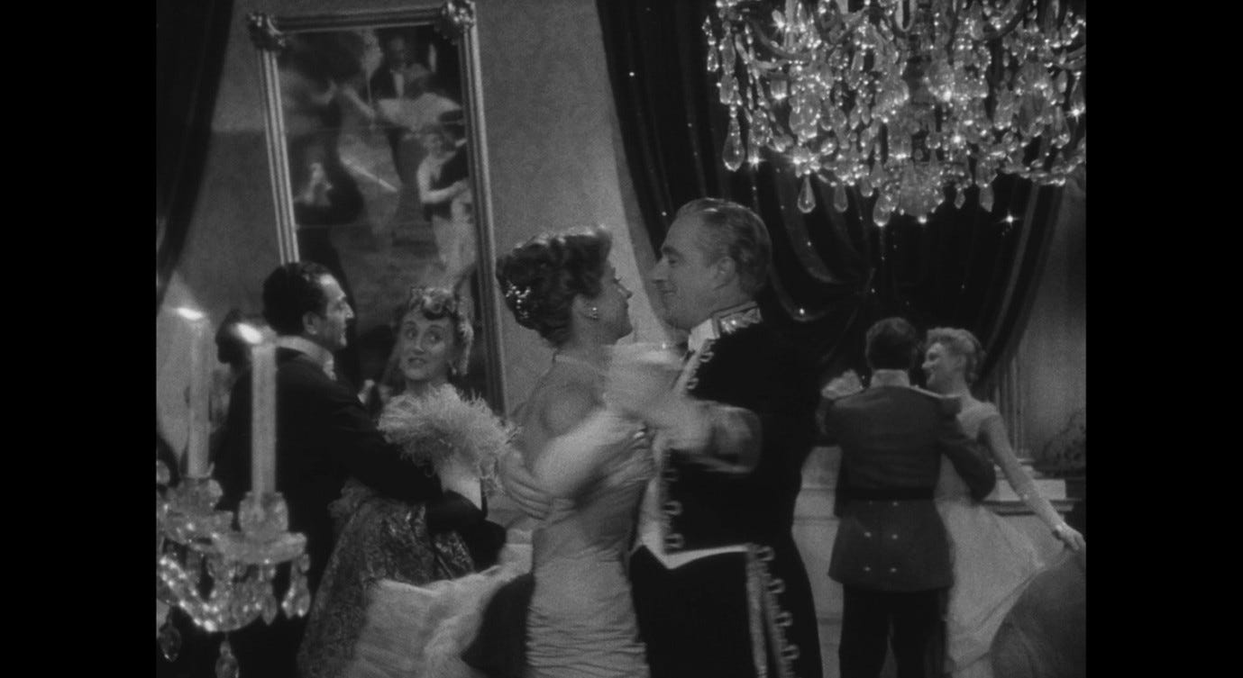 Waltzing provides an opportunity for Ophüls’s characters to escape the constraints of the social situations that prohibit their love and creates a temporary postponement of their separation or demise. […] The exclusivity of the waltz is what makes the affair between Louise and Baron Donati […] possible in the first place.15