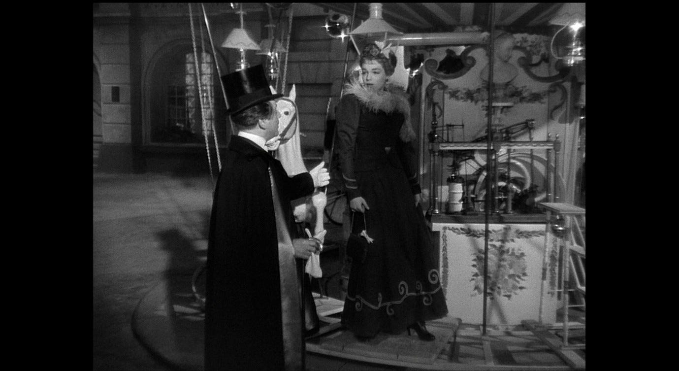 I would lean more towards the latter point of view: I think there is more of an emphasis on escape than on entrapment in Ophüls’ waltzes. In La ronde, for instance, the compère explains that most people – the characters in this film, for instance – do not understand reality because they see only a small part of it, whereas he sees everything en rond, in the round. He explains to the chambermaid that she is about to lose her job, but then he transports her two months into the future, to her next amorous encounter.