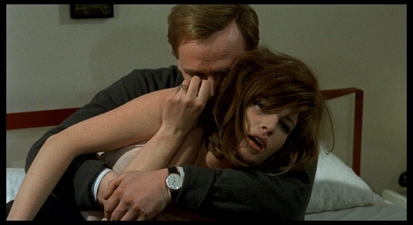 The hotel-room scene in Red Desert is in some ways more straightforwardly critical of the abusive man, and more ‘on the side of’ the woman he is abusing. This is how Antonioni described it: