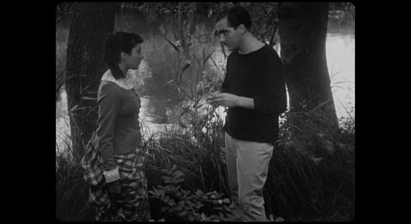 In A Day in the Country, Henriette tries to fight Henri when he embraces her on the river-bank, but then she pauses and suddenly kisses him back. Here too there is a kind of rape-myth propaganda at work: Henri is simply taking the relationship where it needs (or ought) to go, consummating their love even though unjust circumstances mean they cannot be together in the long term. Henriette resists strenuously because the morality of her culture (a different manifestation of those vieilles choses) tells her this is wrong, but when she ultimately ‘gives in’ this is, the film asks us to believe, expressive of what she truly wanted all along. Years later, when Henriette is married to the repugnant Anatole, she sees Henri nearby and seems to grieve for the lost happiness he represents.