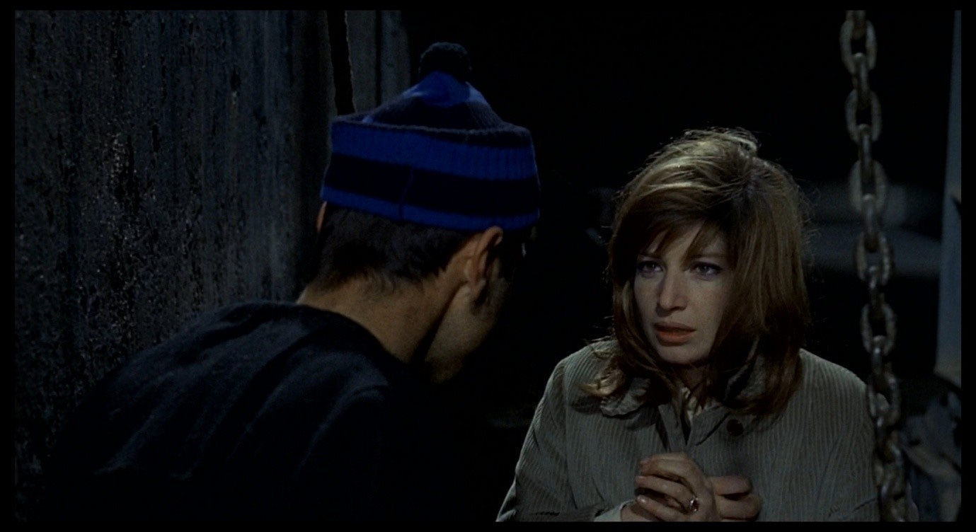 The noise was caused by a sailor removing the chain barrier at the top of the stairs. The down-to-earth ordinariness of this sailor, with his blue-striped cap, earnest expression, and slightly patronising tone of voice, disrupts the existential tone of Giuliana’s night-time odyssey.