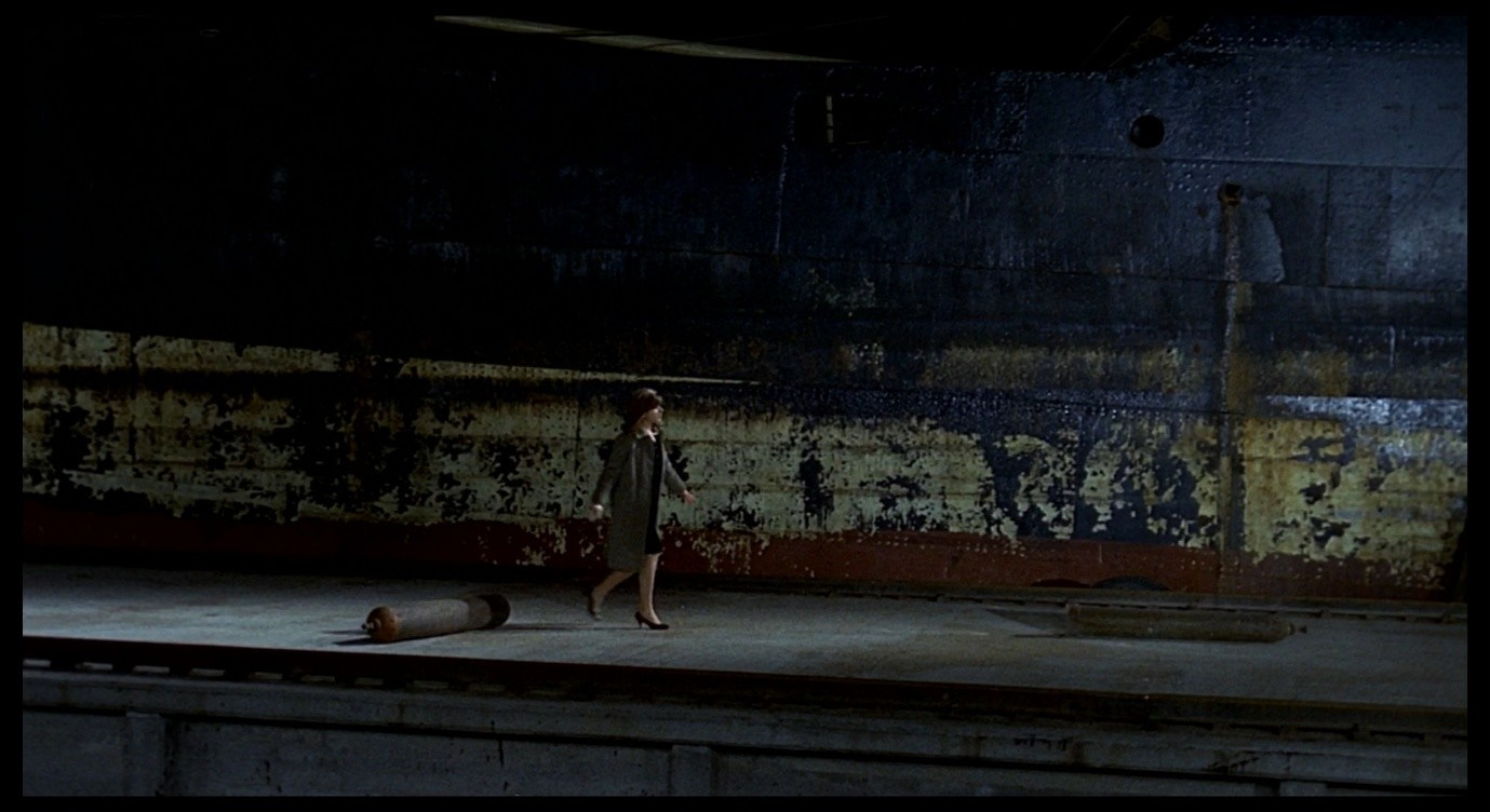 At this point in Red Desert, Giuliana is torn between two kinds of fear: fear of the thing she is escaping from and fear of the thing she is heading towards. This is the tension she will try to resolve in the final part of the harbour sequence, and it stems from a conflict we have seen developing throughout the film. The ties that bind Giuliana to her world are oppressive, even annihilating at times; yet she also feels hopelessly cut off from that world and longs for a firmer connection to it. The shipyard is a liminal space that both connects Ravenna to the rest of the world and facilitates an escape from Ravenna. This port is a defining feature of the industrialised city in which Giuliana lives, it has enabled Ravenna to become what it is – but its only inhabitant (in this scene) cannot speak Italian, is only here temporarily, and has an attachment to a different part of the world. This is the place where Giuliana’s paradoxical desire for attachment and escape will be resolved, in a suitably ambiguous manner.