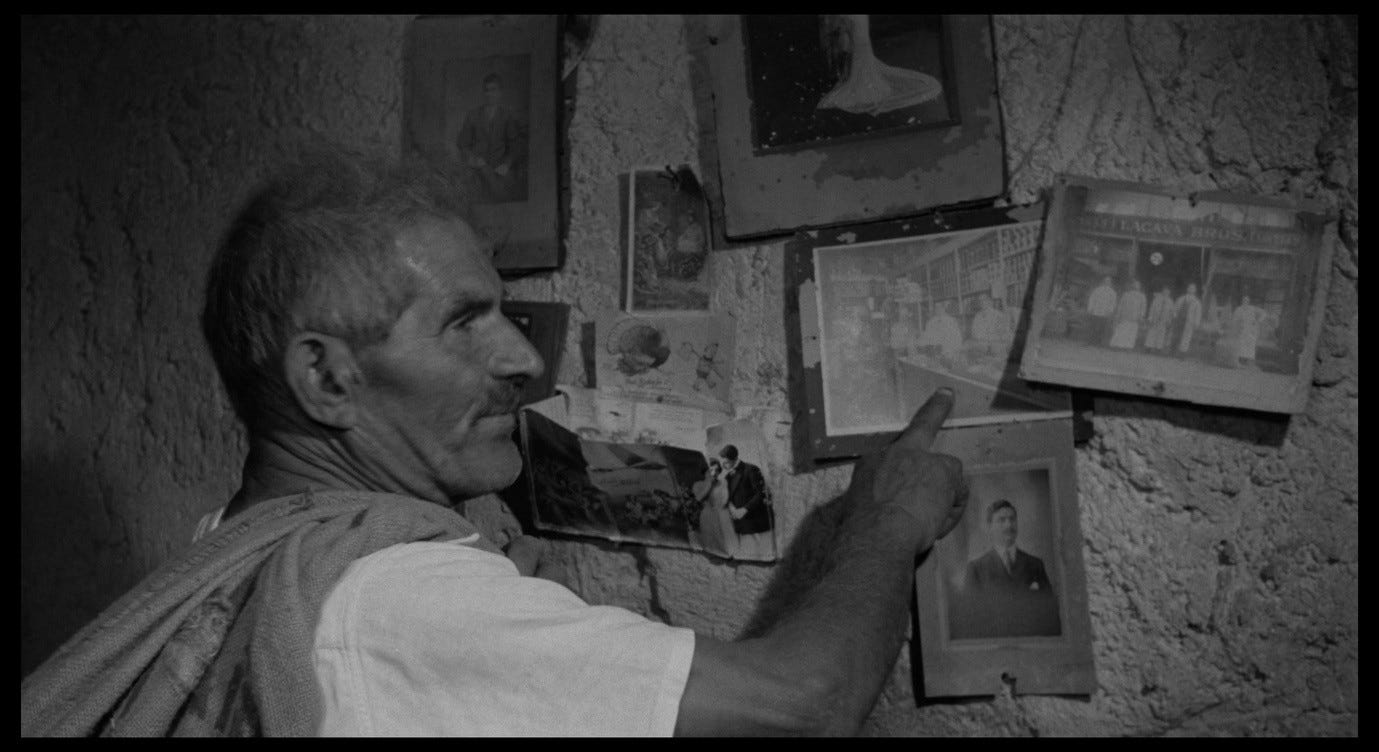 A less obvious, but I think more telling, parallel may be drawn with the old man on Lisca Bianca in L’avventura. He lives in a tiny shack embedded in the earth, in which the characters take refuge during their initial search for Anna. The old man is Italian but has recently returned from a 30-year stay in Australia, which he clearly considers his true home. Speaking English, he introduces his family members, represented by photographs on the wall.