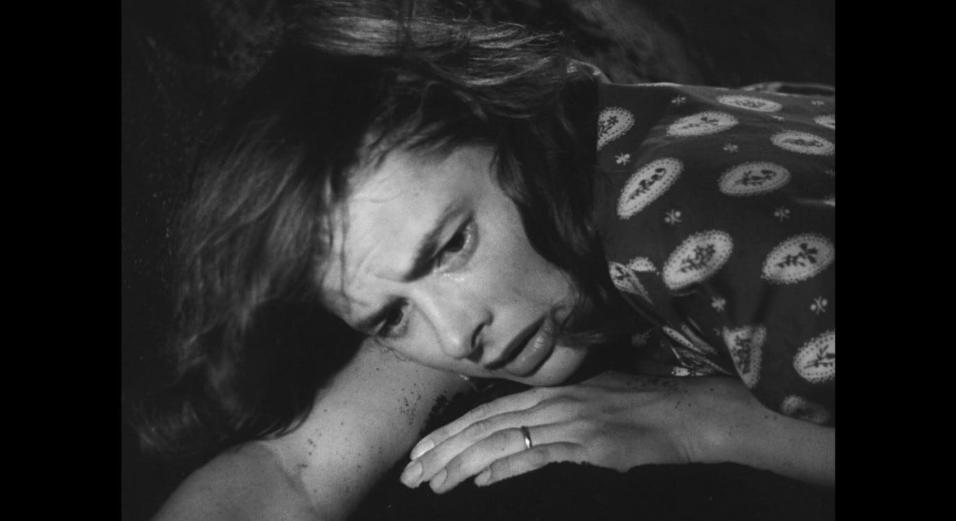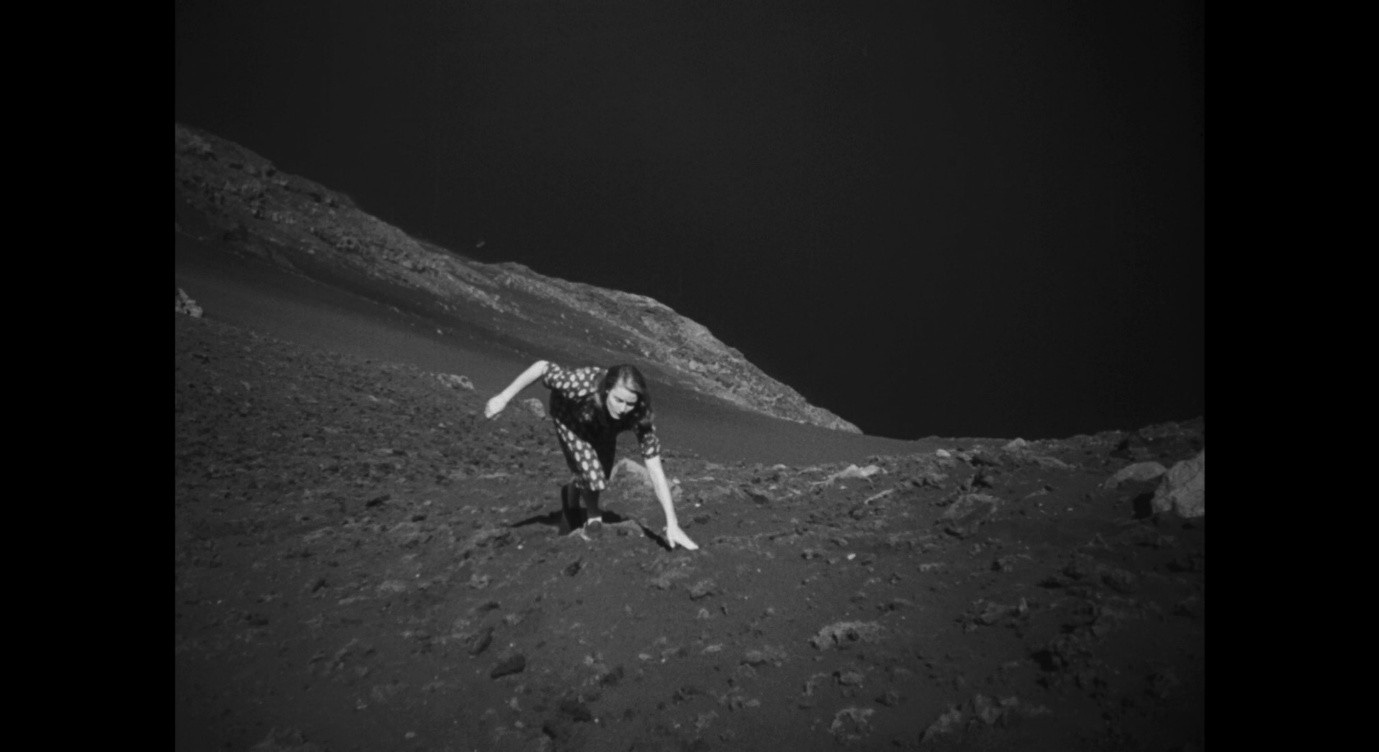 Although she asks God for strength, understanding, and courage, her frantic cries of ‘God! God! God!’ in the final seconds of the film, as the frame is taken over by the sky and the birds, sound like death and dissolution. Karin is unable to tolerate the day-to-day miseries of her husband’s village; then she is unable to tolerate the Sisyphean labour of crossing the volcano; and finally, though she does not take her own life, she abandons herself to the state of limbo that remains her only choice, given the intolerable realities she must otherwise choose between.