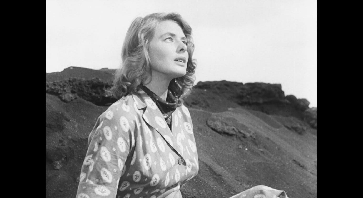 This biblical desert becomes a kind of testing-ground that activates both Karin’s self-sufficiency and her dependence on a higher power. Having suffered under the oppressive authority of her husband and the patriarchal norms of his village, she now frees herself from them; and having rebelled against that authority and those norms, she now subjects herself to the ‘merciful God’ who must redeem her. The film cannot show Karin accepting her life on Stromboli, nor can it show her escaping and gaining full independence. This insoluble tension drives the film’s intense but ambiguous ending.