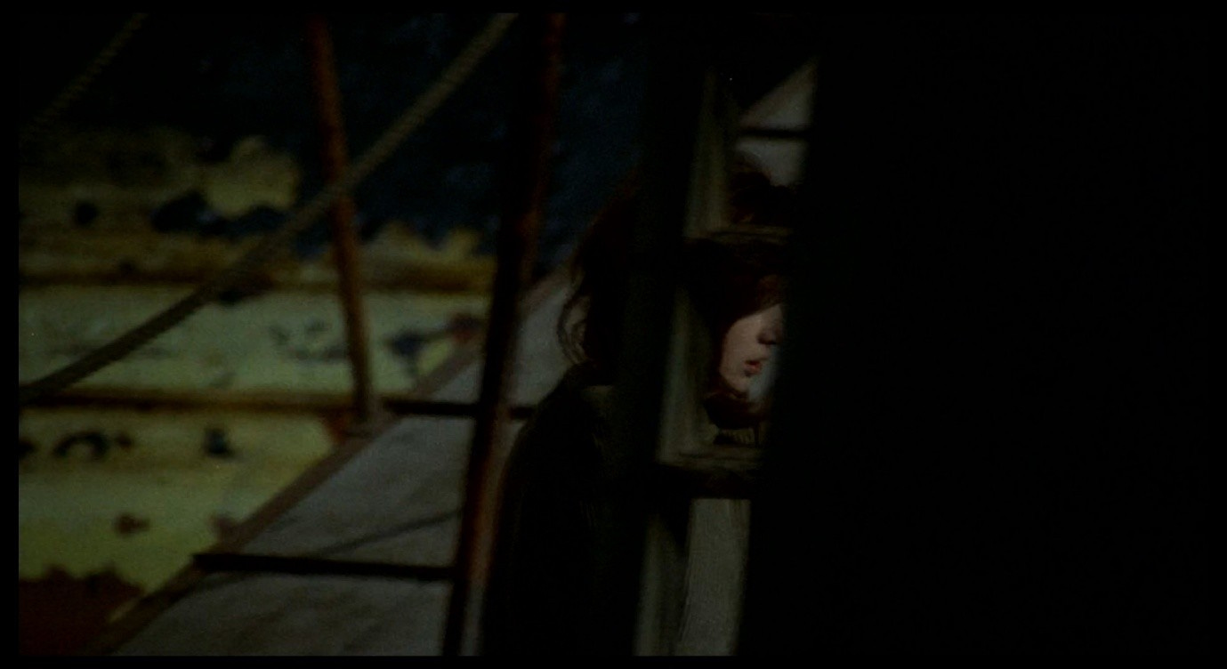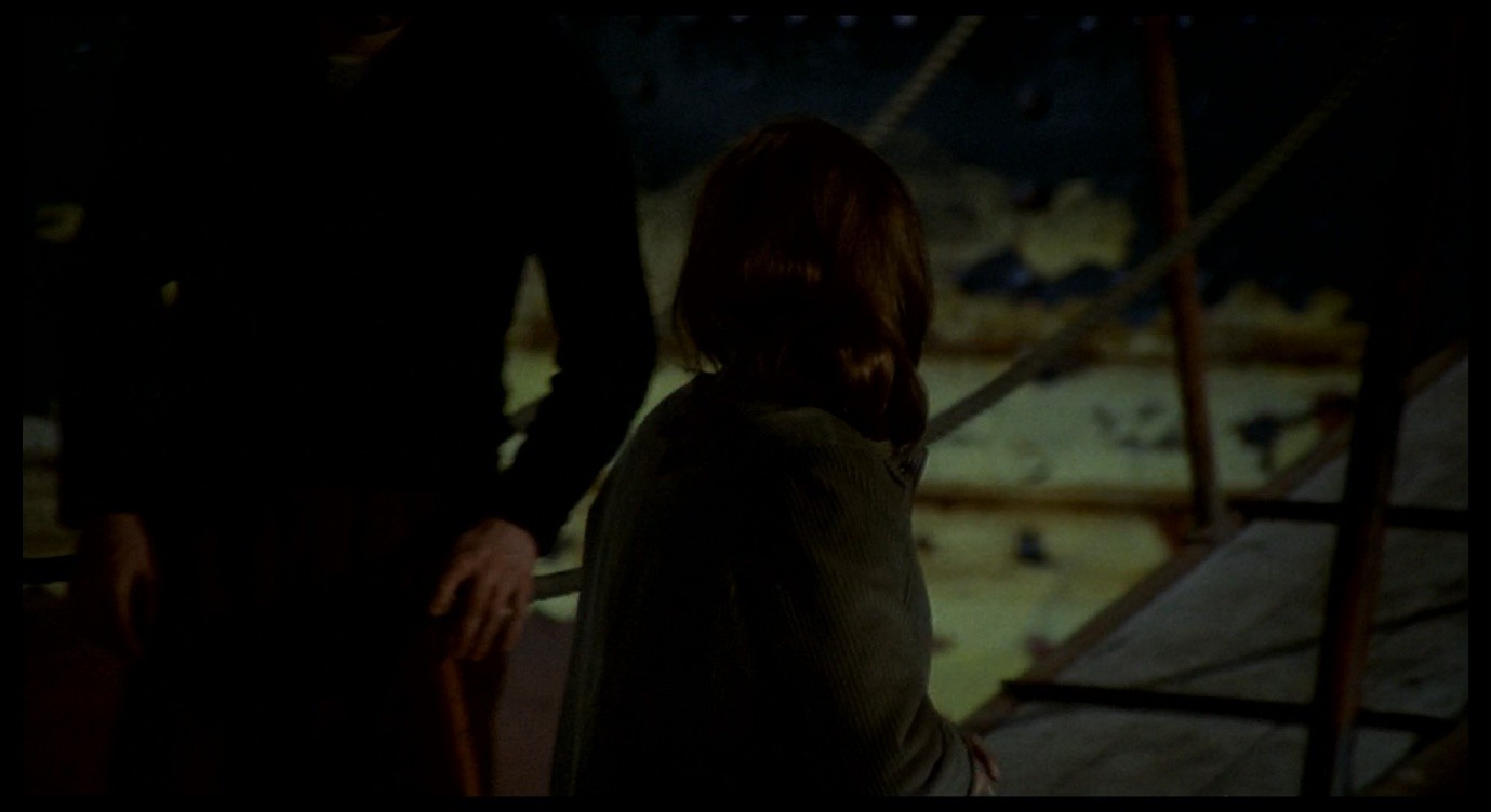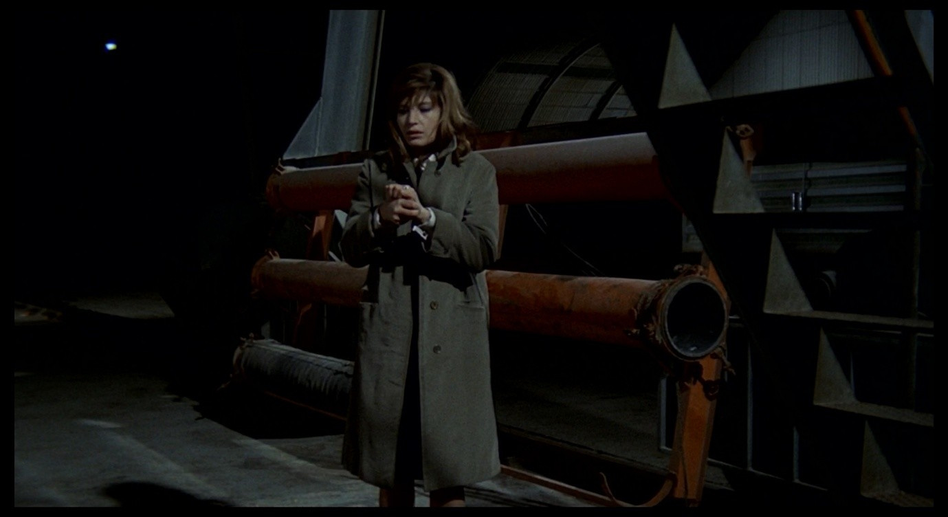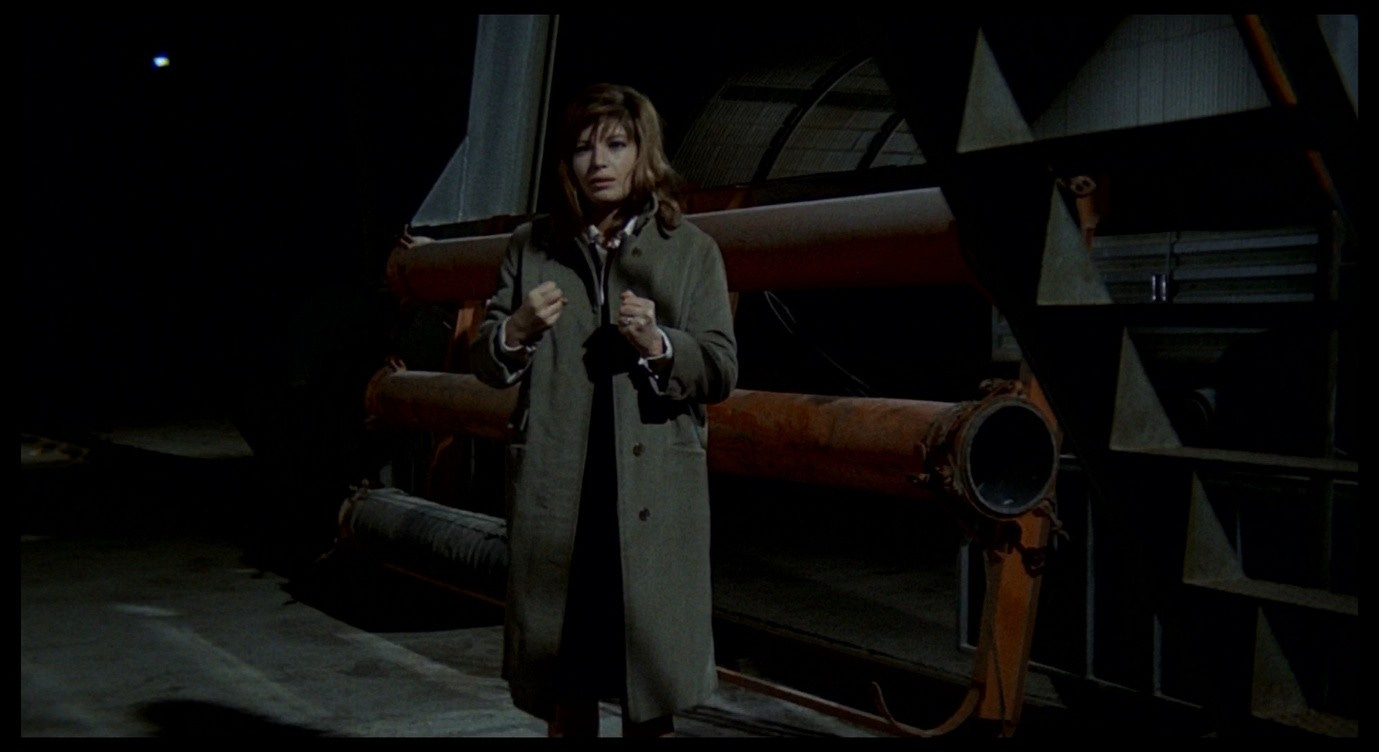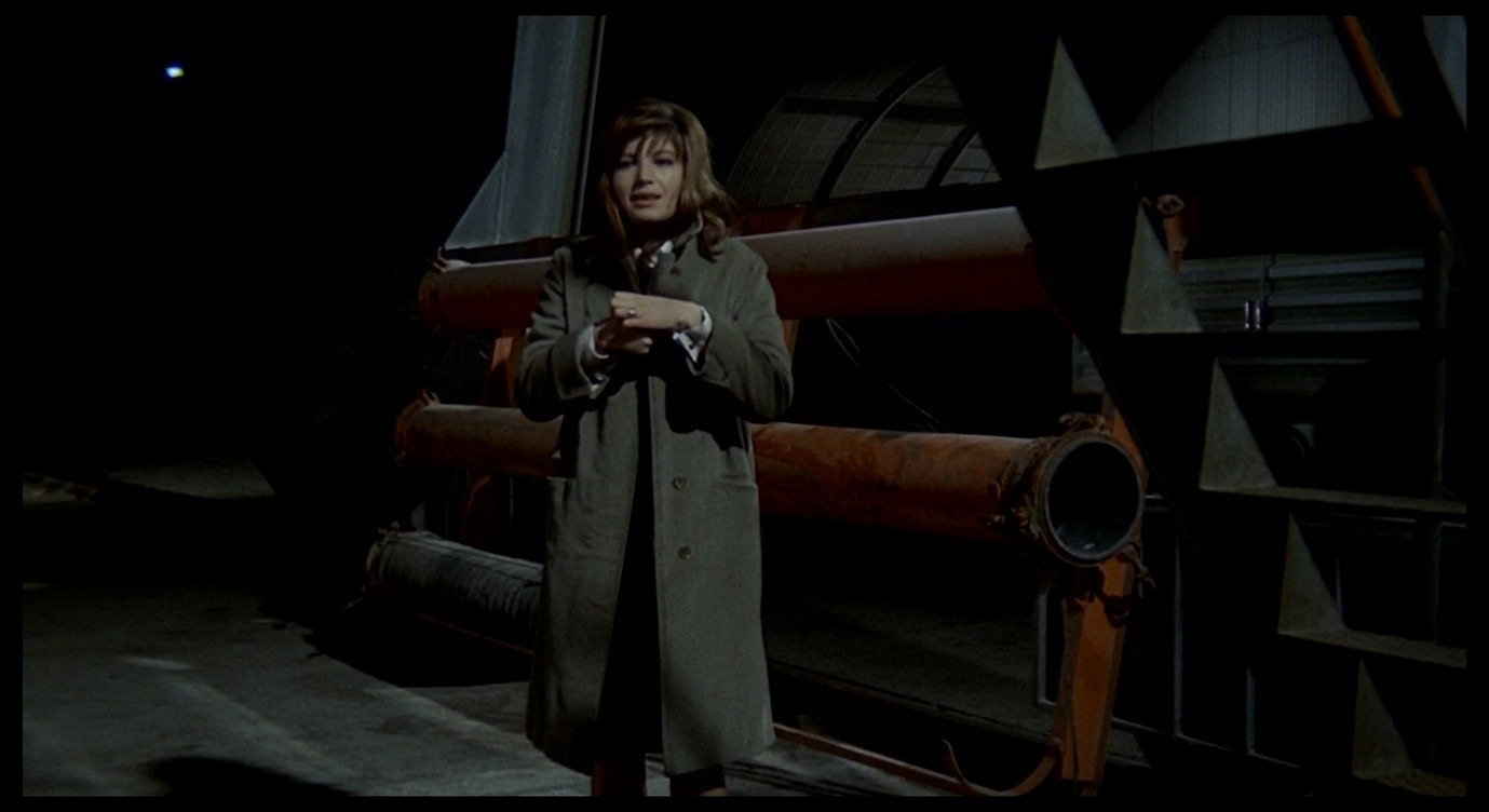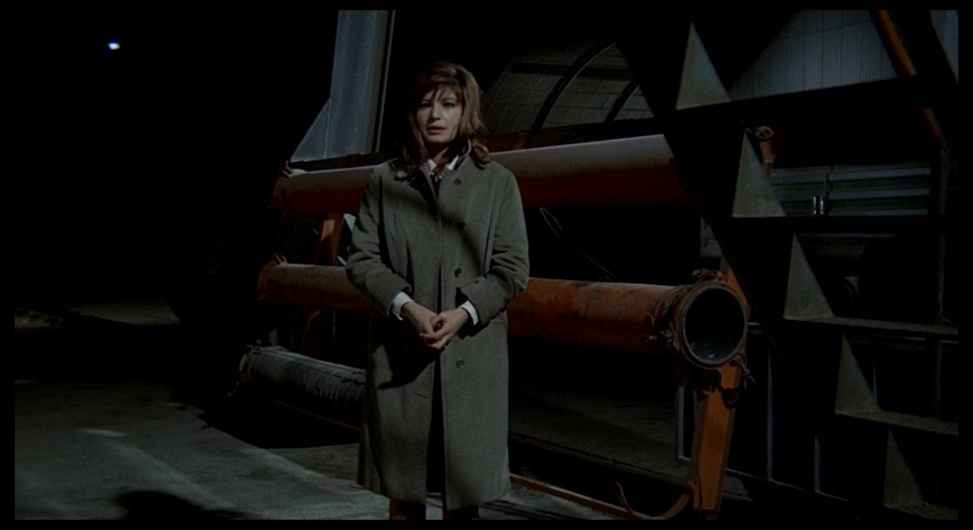 The shipyard scene in Red Desert takes place in the middle of the night, and when the sailor follows Giuliana down the gangway, there is a slight hint of danger.