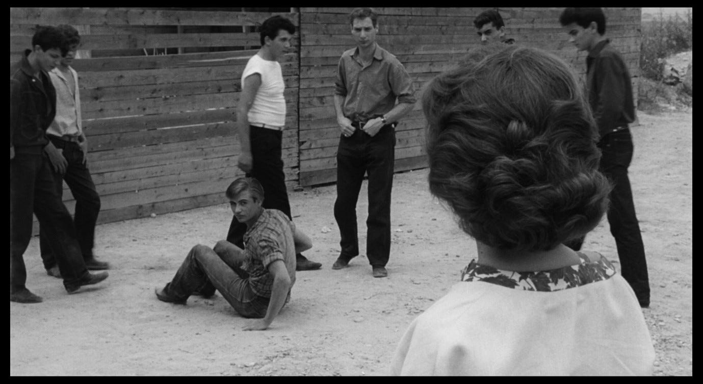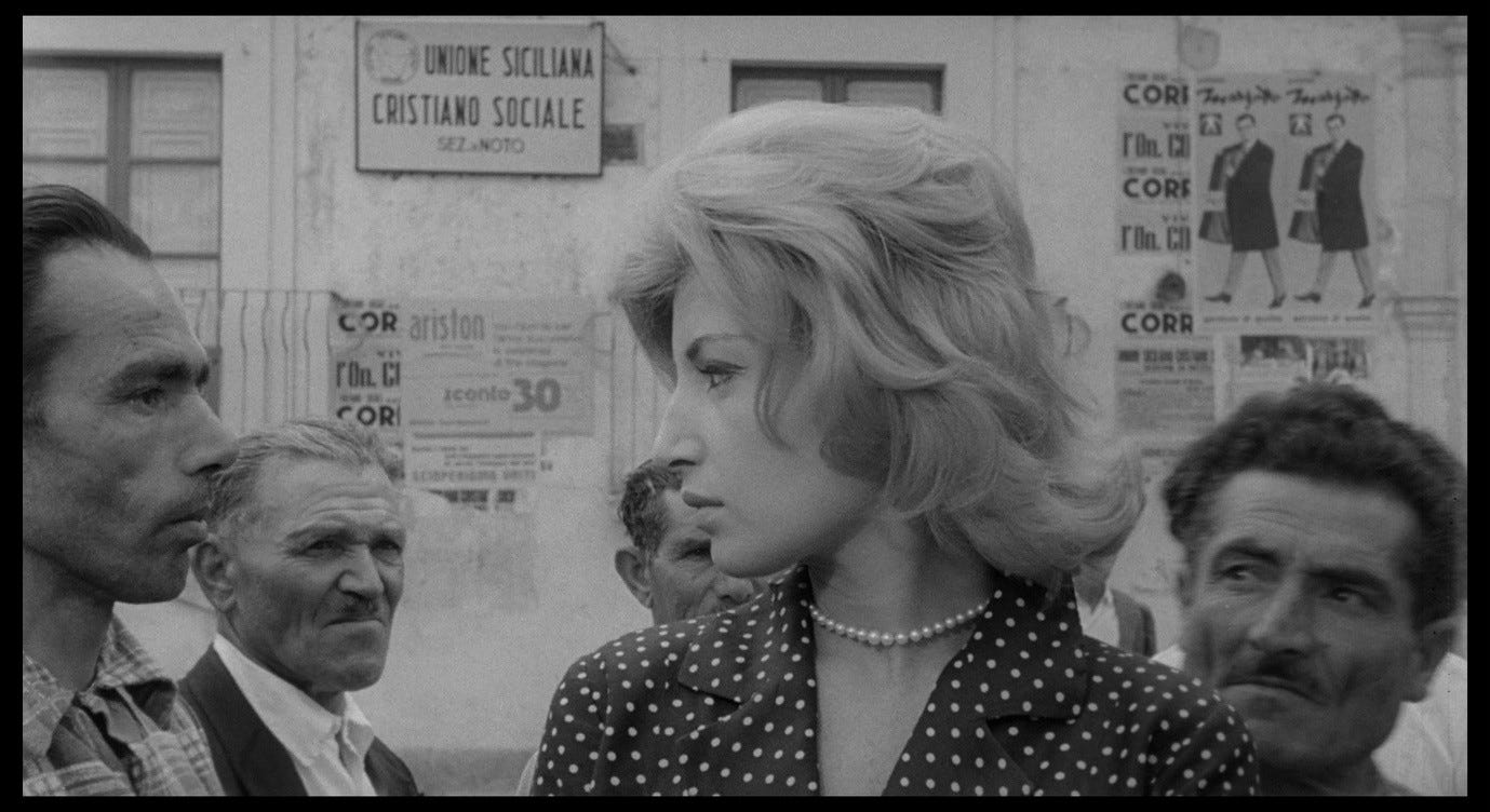 She has asked whether the ship takes passengers, and is afraid the sailor may actually have understood this question. This is also why his sguardo penetrante frightens her: it is specifically his attempt to decipher her meaning that makes her turn away. Strangers in Antonioni films often seem to pose a vague threat that is never fulfilled. Think of Rosina encountering the patients from the mental hospital in Il grido, Claudia surrounded by the ogling men in L’avventura, or Lidia’s encounter with the violent street gang in La notte.