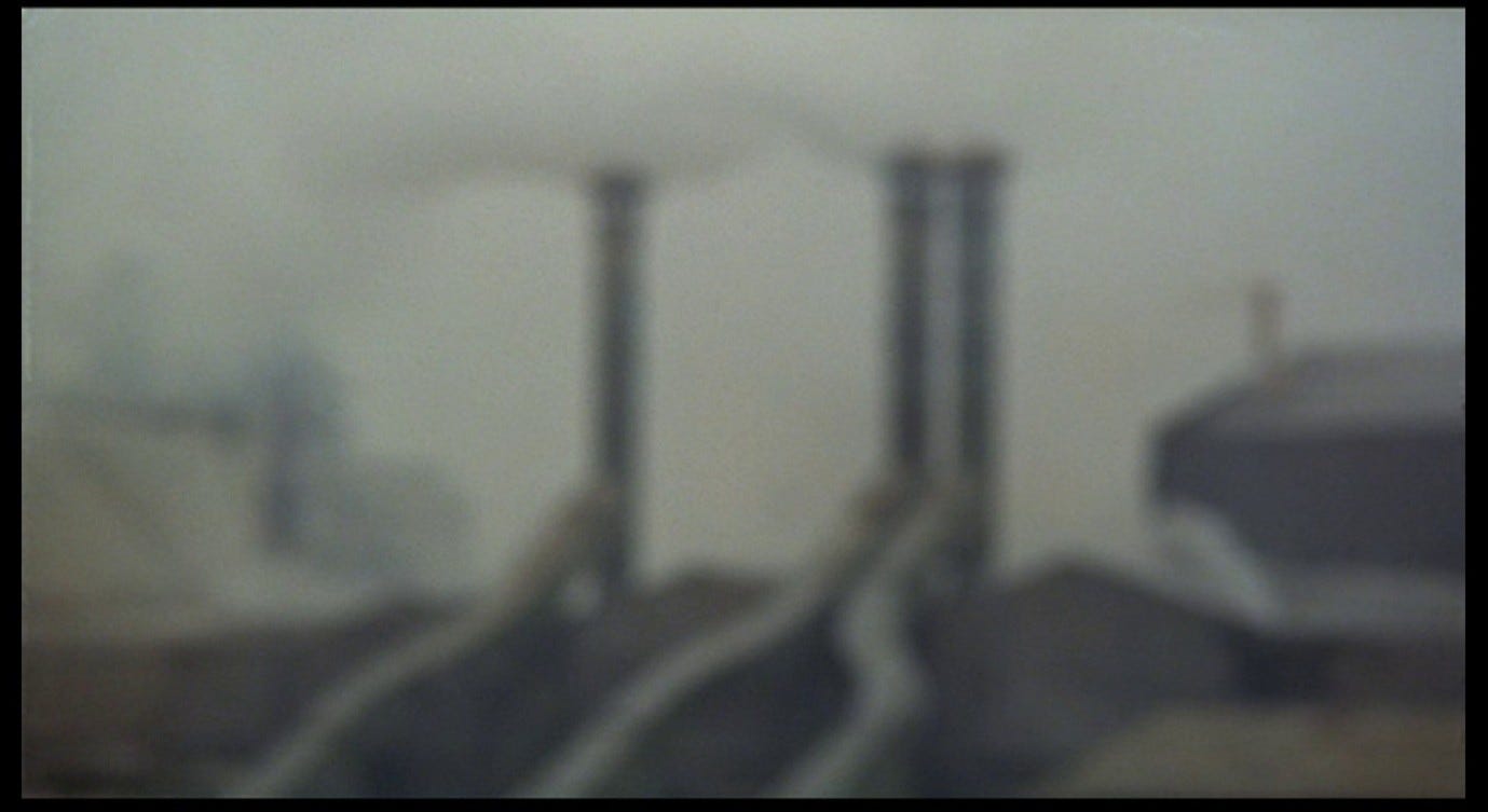 As I said above, the ‘blurriness and instability’ are compounded by the grey sky and the smoke that pours from the factories. Smoke becomes more prominent as the title sequence progresses. It is barely visible above the chimneys in shot 2.