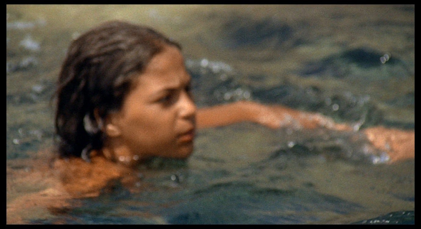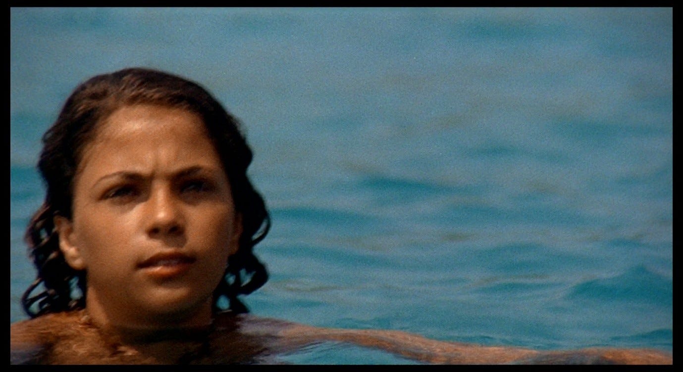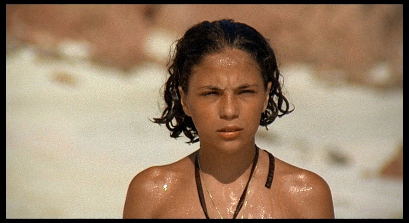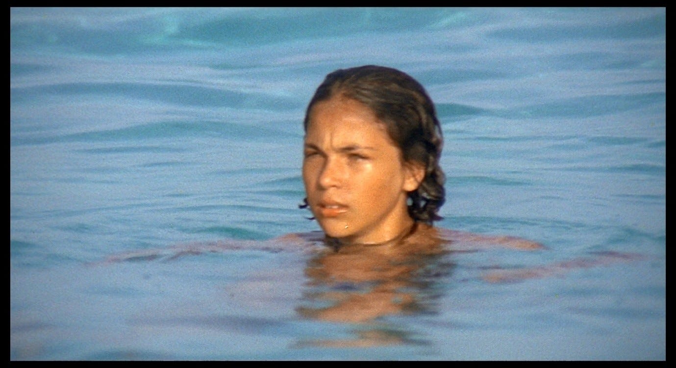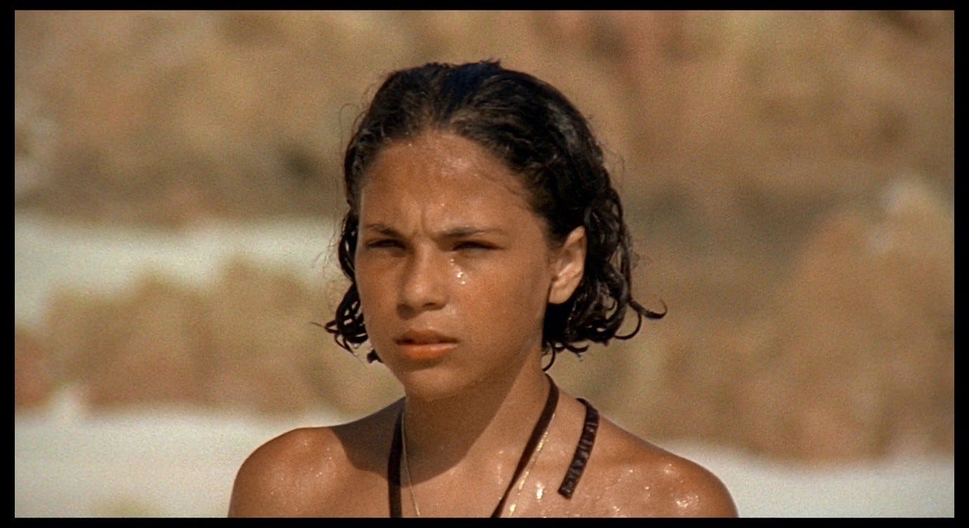 This recalls the opening shot of the fantasy-cove sequence, which showed a green-brown blur of vegetation, then tilted down to the pinkish-white blur of the sand and the blue blur of the sea, before settling on the in-focus young girl floating in the water.