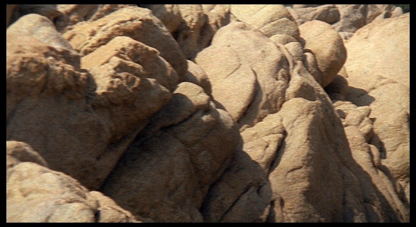This is, appropriately enough, a confusing and mysterious sequence, but it may become easier to understand if we focus on two key aspects of the song: the fact that we are hearing it for a second time and the fact that it brings Giuliana’s story to an end. The song’s appearance over the opening credits suggests that it is a crucial, defining element in Red Desert, and its recurrence now marks this as a crucial, defining sequence. However, the song is also what causes Giuliana’s bedtime story to run aground. It is while talking about the song that she becomes distracted from the protagonist of her own tale. She is so hypnotised by this sweet, haunting sound that she simply allows the narrative to fizzle out. Images of rocks that look like human bodies crowd the frame in shot after shot, until we lose our grasp on the difference between a rock and a body, or our grasp on what is happening in this scene.