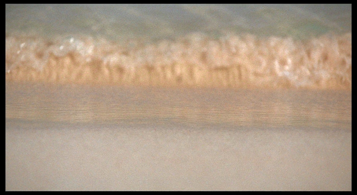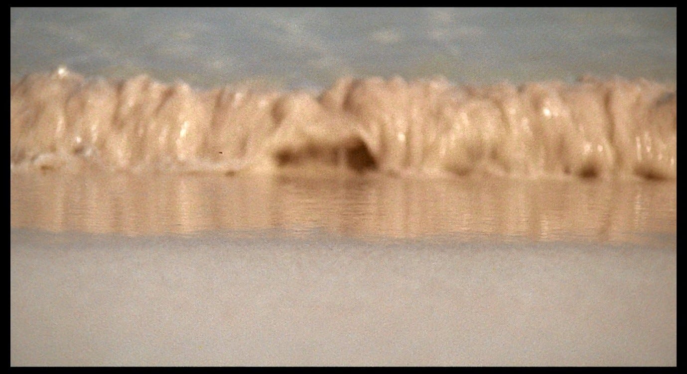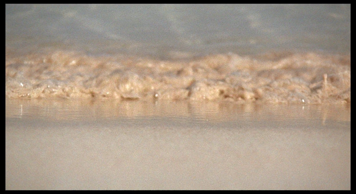 In the close-up of the lapping wave in Red Desert, we no longer see the beach and the surf in relation to the ocean and the sky, we see only this single threshold – and this brief threshold moment – where water erupts into a white foam before turning transparent again, thereby creating, marking, but then smoothing over the difference between sea and land.