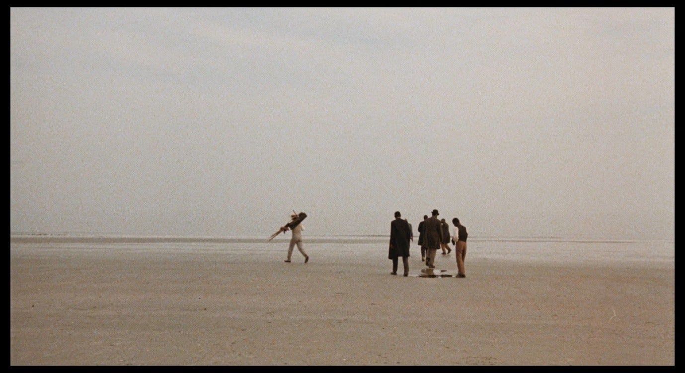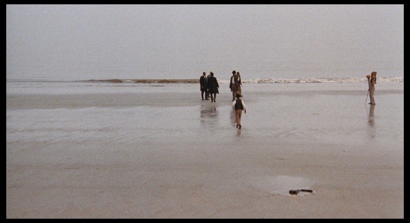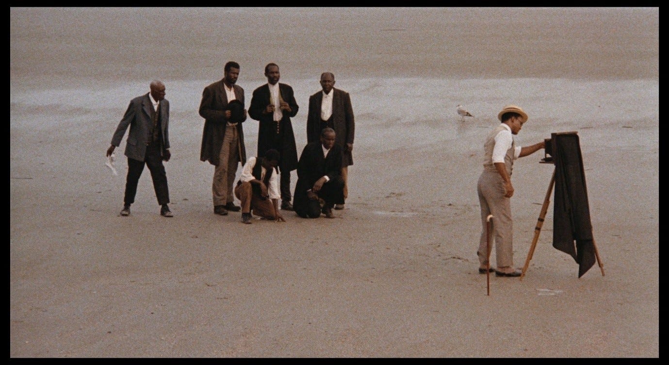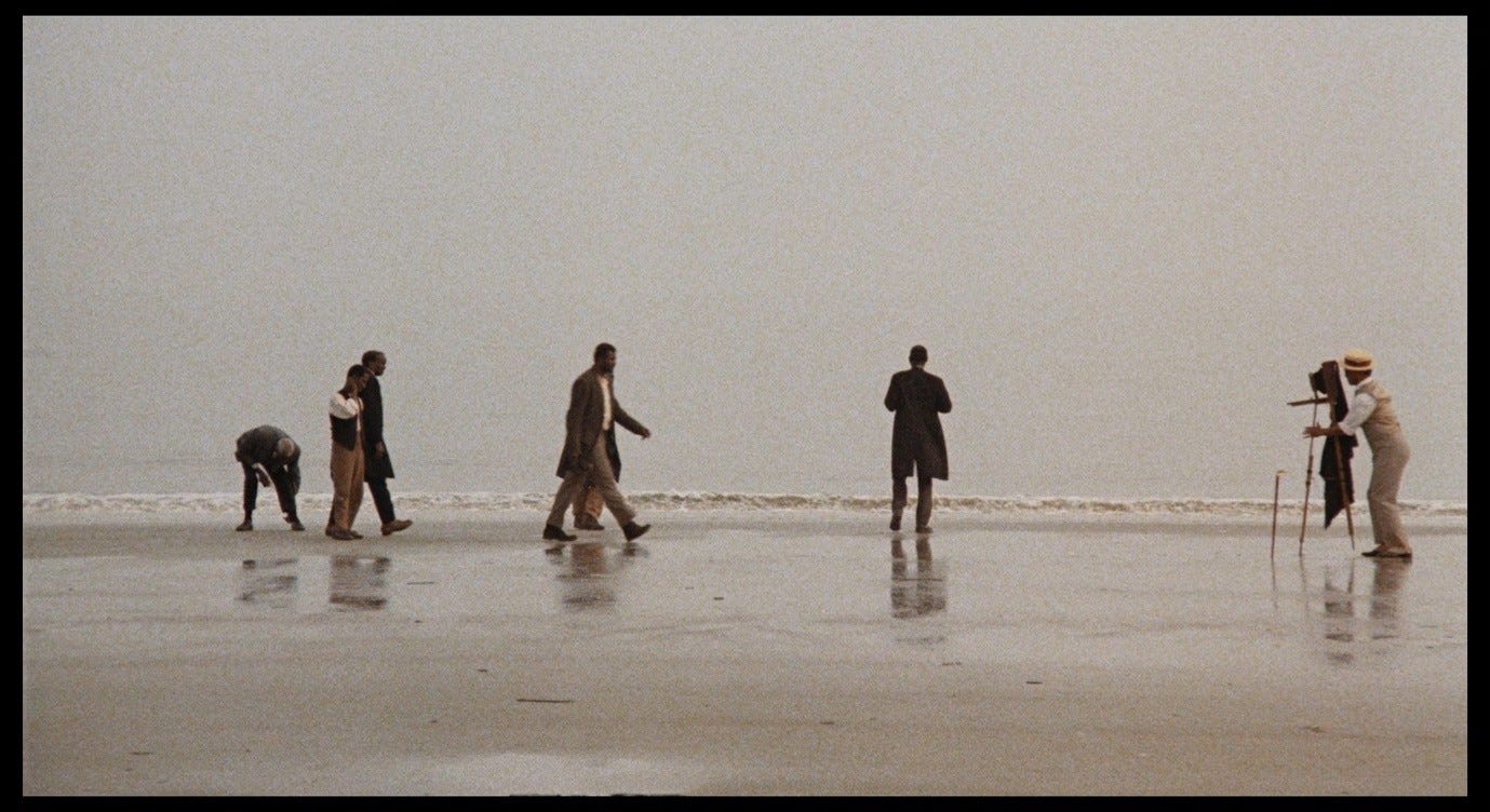Giuliana is, at times, drawn to a version of reality in which all things blur into each other, and in her story she imagines being able to spend all her time immersed in these blurred boundaries, gazing at the sky-sea-land or moving freely between them. Such imagery is also used throughout Daughters of the Dust to suggest the continuity between past, present, and future. It is particularly striking in one of the photograph-taking scenes, when Mr Snead and a few of the Peazant men venture onto the beach just after the tide has gone out. In perhaps the most beautiful series of shots in the film, we see land, sea, and sky become truly indistinguishable from each other, partly thanks to the Antonioni-esque greyness of the weather on that day of shooting.
