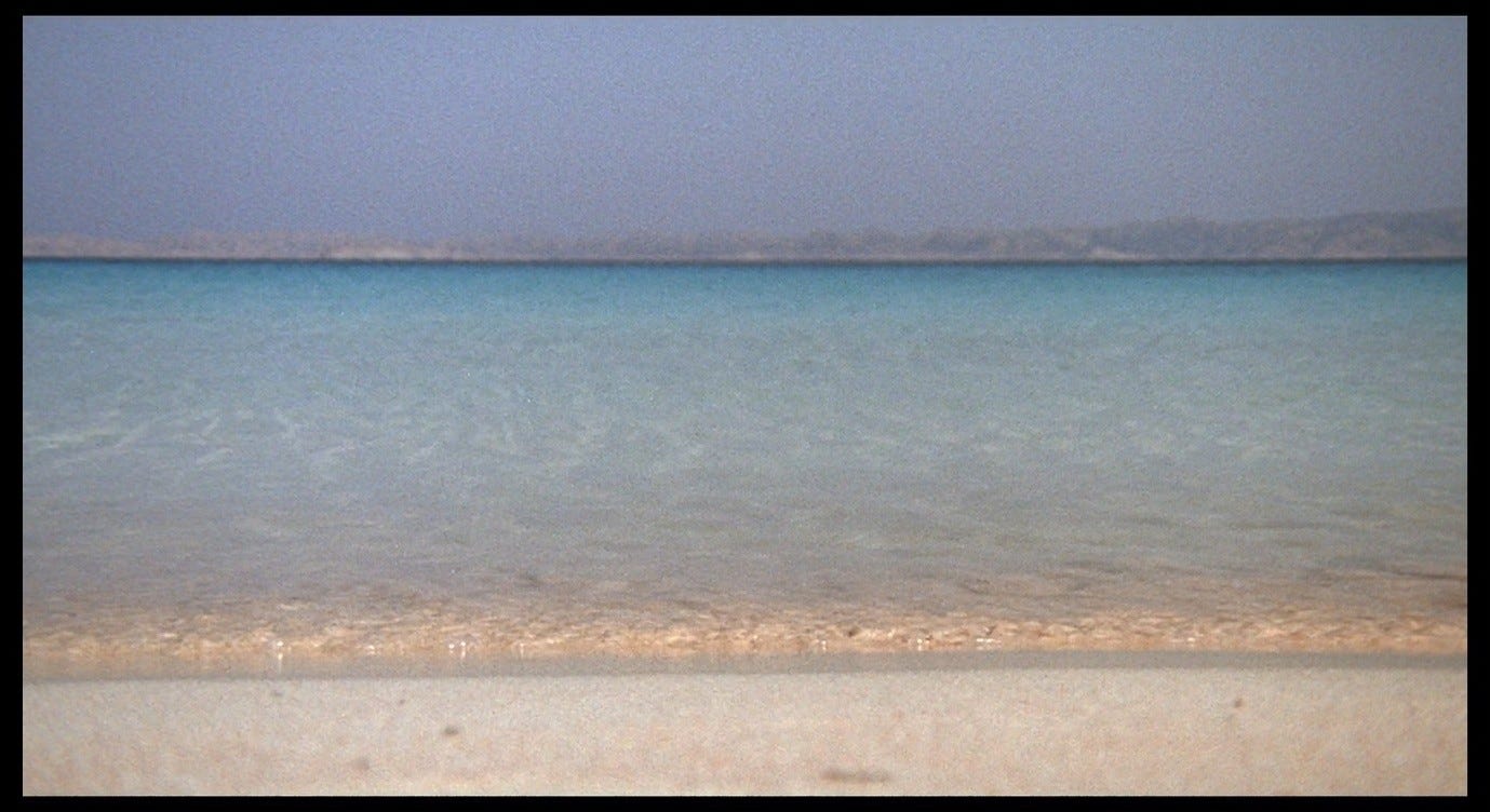 However, these two spaces – the beach and the desert – are not simply antithetical to each other. Those painterly images of sky-sea-sand show these elements merging into each other, thereby calling into question the distinctions between them. In the long shot (which includes the sky), the waves splash against the shore in a soothing natural rhythm, in contrast to the agitated ‘ah-ah-ah’ of the flames spurting from the flare-stack in the opening scene (see Part 5).