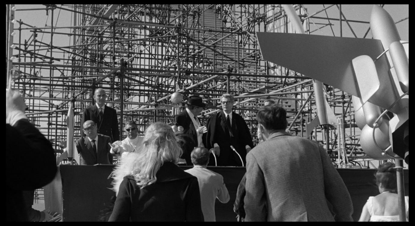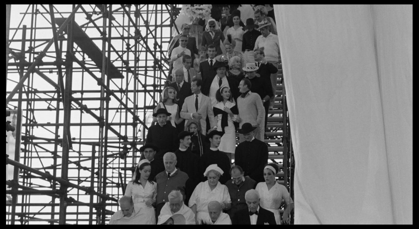 The whole project is too grandiose, it has nothing to say, and everyone hates it before pre-production has even been completed. The nightmare ends with Guido shooting himself, and we then cut back to ‘reality’ to find him ordering the deconstruction of the tower.