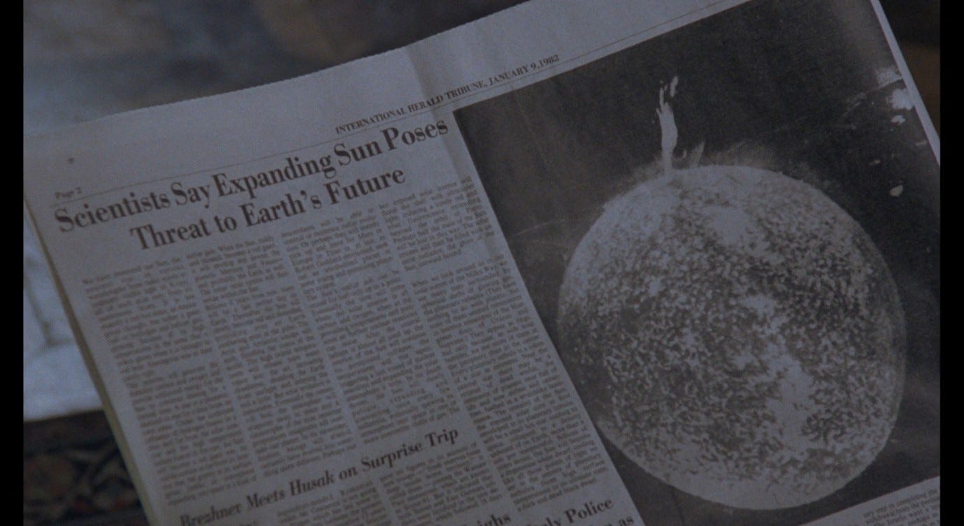 ‘Maybe I should contact one of these people,’ mutters Niccolò, before wearily repeating ‘Oh god’ as he contemplates this comically un-filmable script. However, the reference to voices from al di là – the beyond, the afterlife – is as prophetic as the commemorative stamp, because the sci-fi fantasy at the end is not only about the acquisition of knowledge from the sun’s interior, it is also about the ignoto, the corona of mingled darkness and light around the sun, so beautifully captured by di Palma. The nephew’s dopo invokes those voices from the beyond, not with reference to the afterlife, but in the same vein as Antonioni’s meditation on the layers of reality (see Part 31), the succession of ‘revealed images’ behind which is either an ‘absolute, mysterious reality that nobody will ever see’ or a ‘decomposition of every image, of every reality.’12